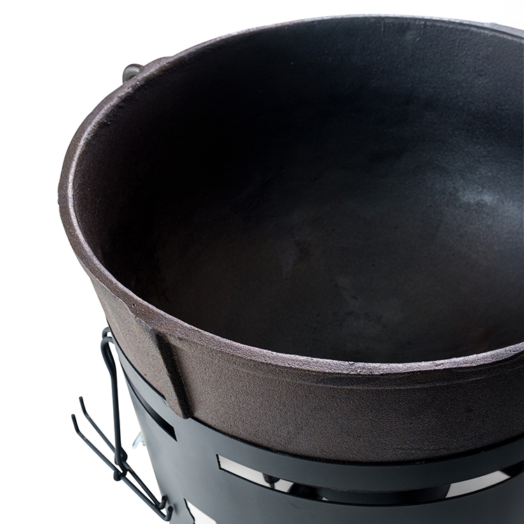 “The black steel stand is extremely sturdy. Perfect for large pots and outdoor cooking.”