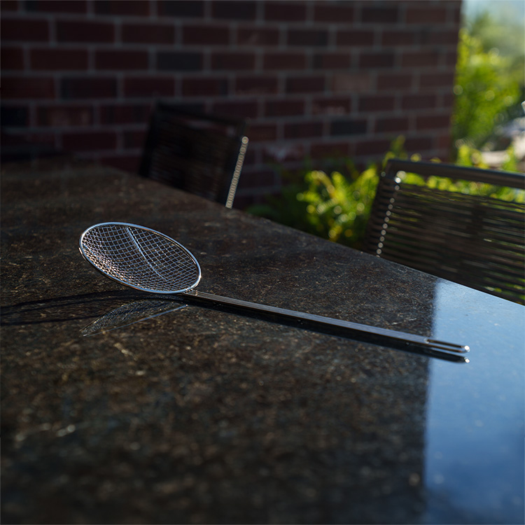 Achieve culinary perfection with our Skimmer, designed to make straining and lifting ingredients a breeze. Ideal for outdoor cooking, this versatile tool is perfect for removing shrimp, crawfish, and other foods from boiling pots or deep fryers. Crafted from durable, heat-resistant materials, the Skimmer features a sturdy handle for comfortable use and a fine mesh bowl for efficient draining.
